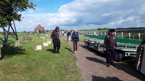 Een groep vertrok met drie karren, getrokken door trekkers, onder leiding van William Vercraye naar de noordpunt van het eiland. Daar bleek het bestuur door middel van verhuisdozen de locatie te hebben aangegeven van de Schokkers die er rond 1832 woonden. Op de doos was een grote sticker met de naam van de huiseigenaar. Niet alle namen waren even makkelijk herkenbaar doordat vroeger bij het overnemen van de gegevens op de oude kadasterpapieren nogal wat fouten zijn gemaakt. Maar dat gaat allemaal hersteld worden, en vooraf had ons lid Foppe Kooistra al aangegeven dat er door vrijwilligers hard wordt gewerkt aan een mogelijkheid voor iedereen om op internet de locaties op te zoeken op een actuele kaart (HISGis.nl).